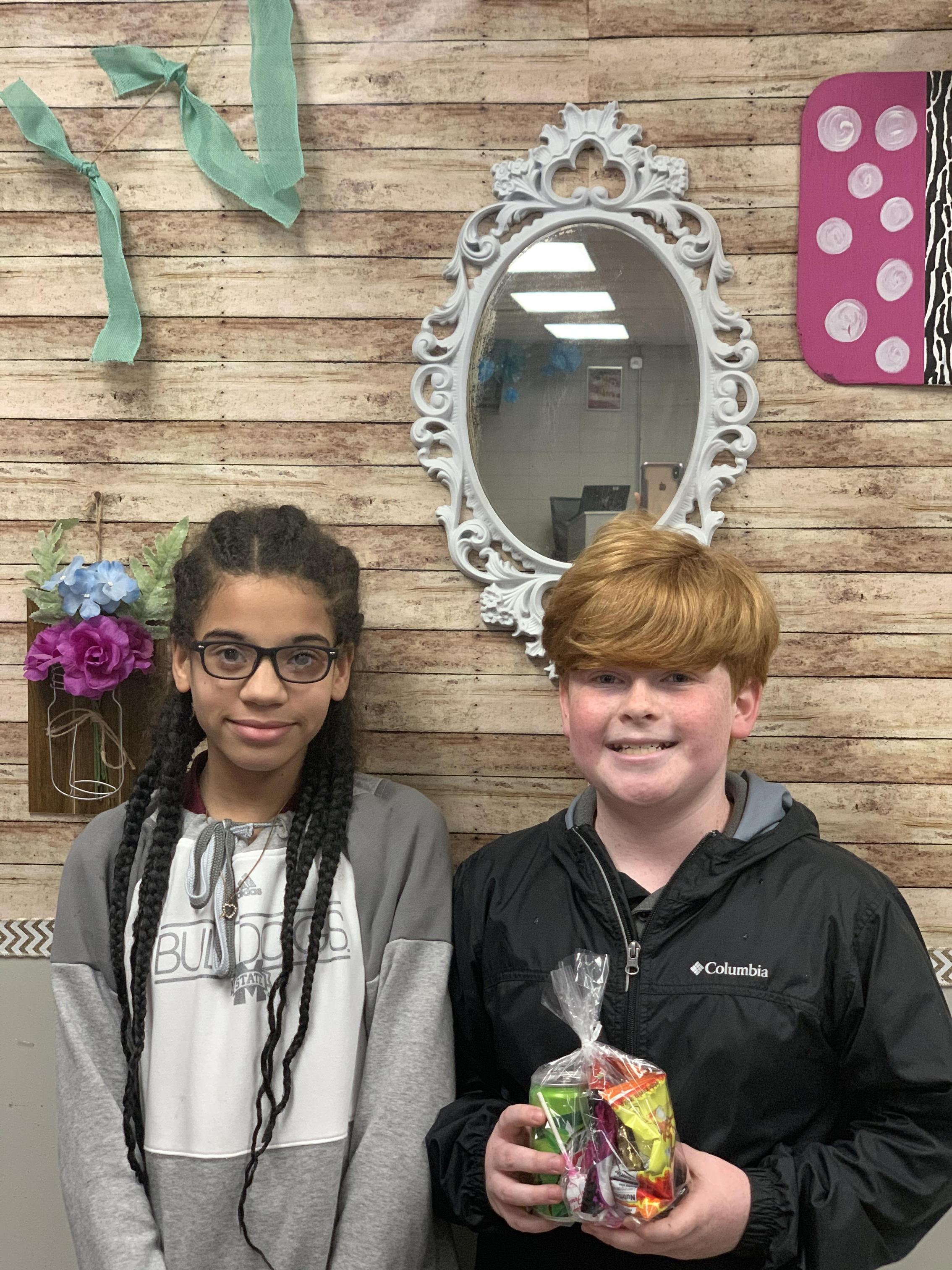 December Students of the Month 5th Grade: Jackson Kelly Tiffany Keyes 6th Grade Jayson Dale Zoey Claire Caldwell 7th Grade Kasen Albritton Alanna Hill 8th Grade Palmer Rigdon (not pictured) Madison Culpepper